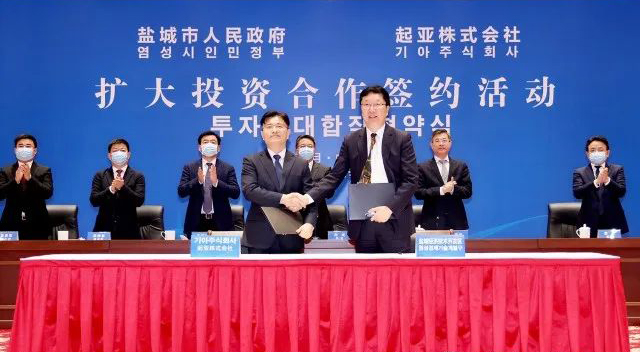 염성시 시정부청사에서 '기아∙ 염성시 투자확대협약'을 체결하고 있다.