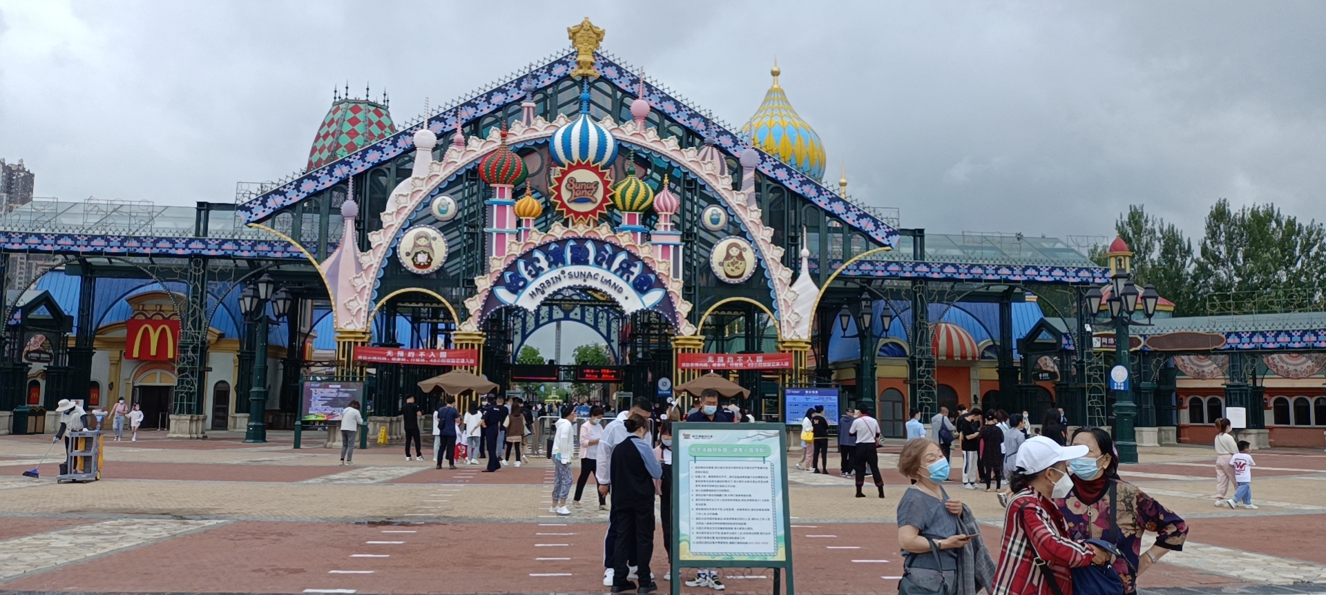 大庆的刘女士和家人来的更早,他们一边观赏风景一边等待商场开门。