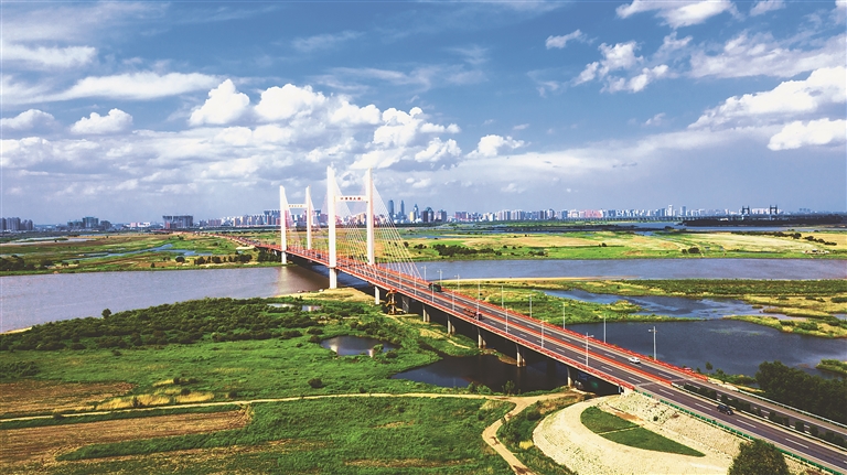 的确,哈尔滨松花江公路大桥贯通了哈尔滨及绥化、黑河、满洲里等国道干线,成为哈尔滨市以及黑龙江省公路交通的重要枢纽,也助力江两岸共融成哈尔滨“大”经济圈。
