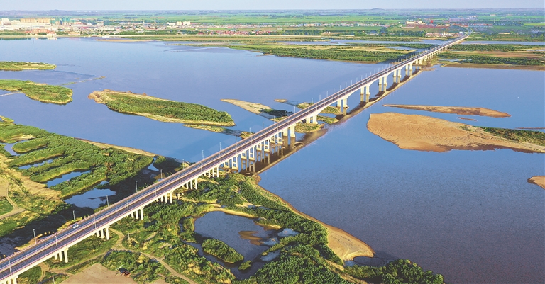 “刚建厂时,大桥还没建完,要将风力发电机的组成设备从佳木斯运到绥滨,只能从佳木斯经鹤岗、萝北绕圈走。由于设备比较大,有的单件在90多吨,运输专用车辆很长,经过一些乡道县道,转弯半径不够,又要垫路取直,250公里需要走一两天。2011年大桥建成通车,从富锦到绥滨只要30多分钟,比以前节省10个多小时。”马洪阳说。