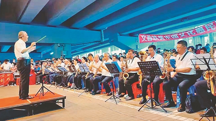 人群背后是车水马龙,人群里则是鼓乐齐鸣。每到夜幕降临,在哈尔滨市文昌立交桥下,一支民间乐团将空旷的桥下空间变为“演奏厅”,一演就是14年。
