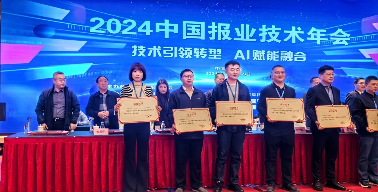 黑龙江日报业集团近年来持续推进媒体深度融合,不断完善适应互联网传播规律的体制机制,全面提升技术保障能力,做大做强新媒体品牌,进一步提升党媒传播力和影响力。会上,黑龙江日报报业集团荣获 “全国报业媒体融合技术支撑优秀单位”等九个奖项。其中,薛兰奎、肖志钢的《AIGC:数字新闻生产驱动城市形象创新》,荣获“2024年中国报业技术论文特别奖”;案例《“龙江视界·国际传声”全球传播系统》荣获“2023-2024年度全国媒体融合技术应用案例一等奖”;《AI赋能视频内容生产》荣获“2023-2024年度全国媒体融合技术应用案例二等奖”;《智能党建学习和活动平台》荣获“2023-2024年度全国媒体融合技术应用案例优秀奖”;肖志钢、王心慧、高翔的《智能媒体背景下媒体融合技术发展趋势探析》和尤可可、曲振宇、朱橙的《AIGC赋能数字出版转型升级路径探析》,荣获“2024年中国报业技术论文优秀奖”;朱橙、王心慧荣获“2024年全国报业优秀技术工作者”。
