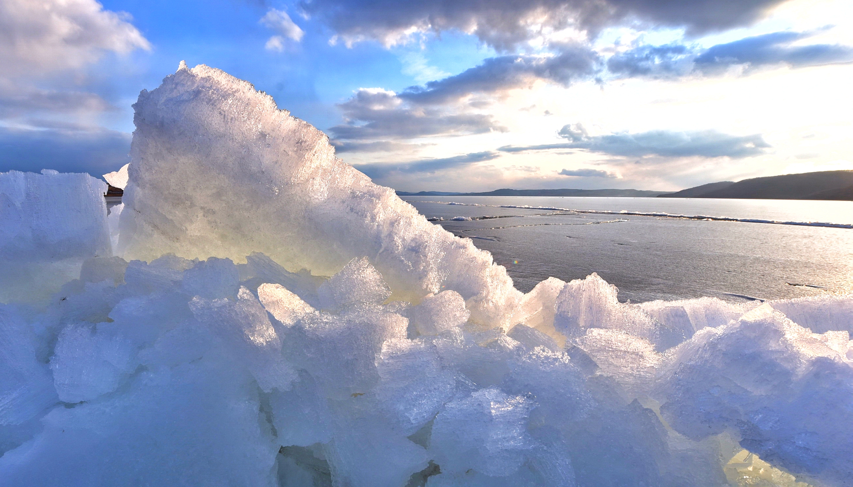 随着气温的回暖,世界地质公园镜泊湖迎来一年一度的开湖季节。在水域开阔的南湖头,持续不断的风浪,将融化的冰排,推上湖岸,形成了巨冰堆岸的罕见景观,吸引了当地的影友围观、拍摄。