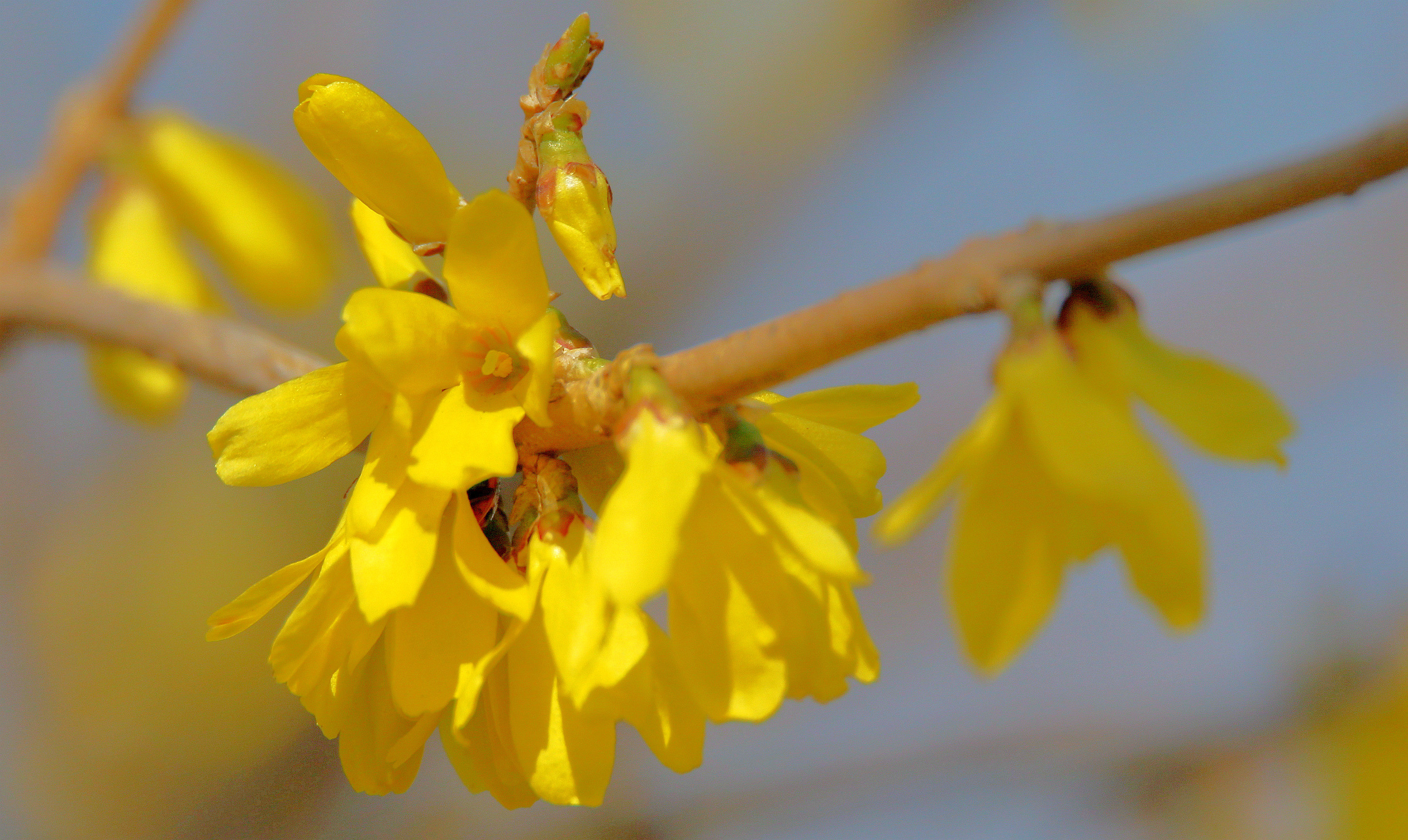 4月13日,哈尔滨市道外区江畔路上,多丛连翘花开。一朵朵鹅黄色的花跃然枝头,让人眼睛一亮,春天回来了。几只蛰伏已久的蜂蝶,被阳光、被花香悄然唤醒,在明亮的枝间,忙碌着吮吸着甜蜜的花粉。四月,冰城的大街小巷,因为花开,生动起来。