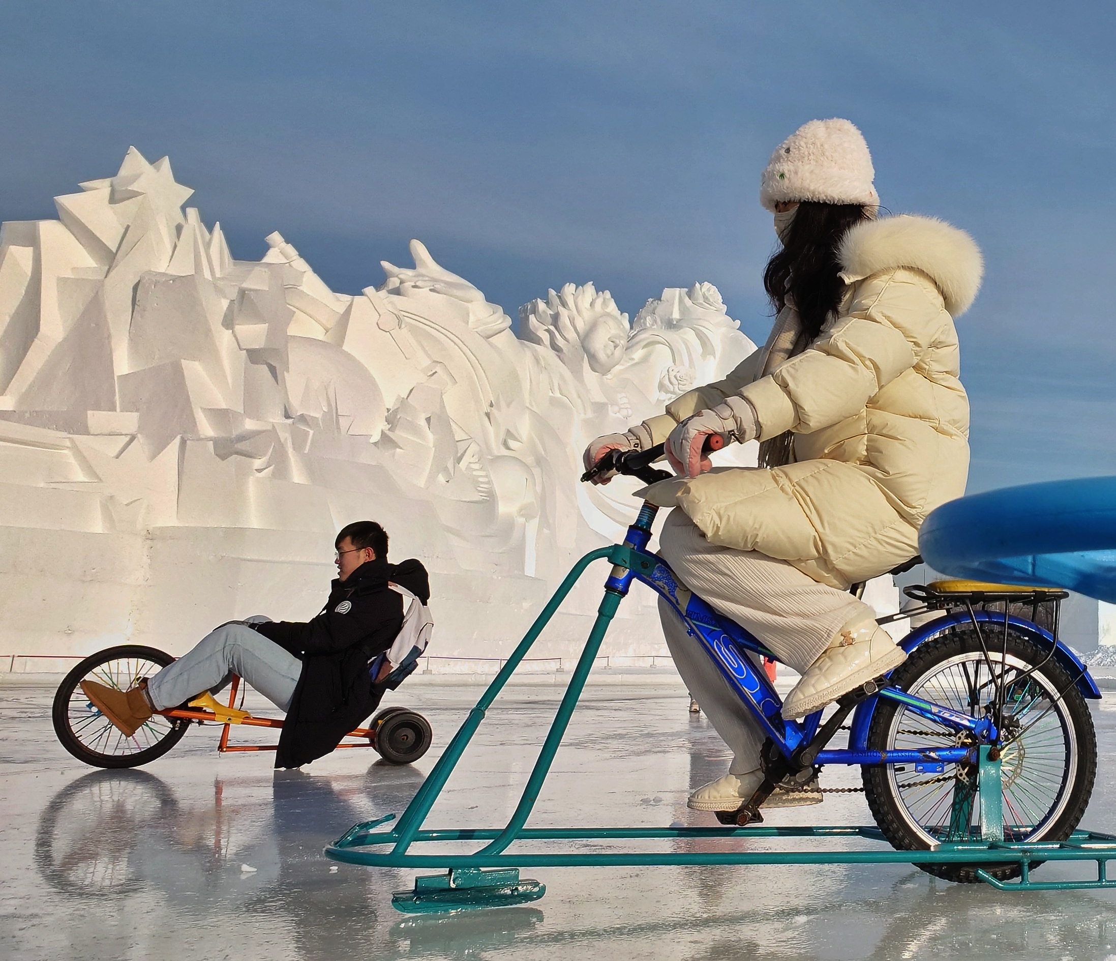 来自广州的张女士兴奋地说:“太漂亮了!从没见过这么多雪雕,真让我大开眼界。刚才我看到一些大学生制作雪雕,原来他们正在比赛,太好玩儿了!”