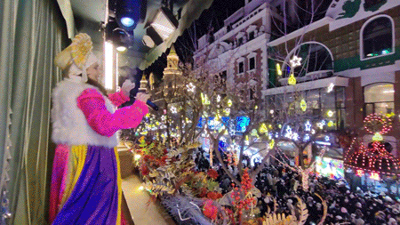 这条超过百年历史的商业街,荟萃着众多文艺复兴、巴洛克等风格的经典欧式建筑。每到夜晚,整条街被灯光渲染得流光溢彩,冰灯也展现出了缤纷的样貌。