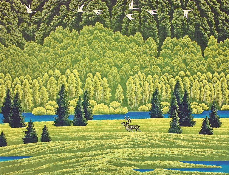 《山恋》 木版油套 60.5×77.5cm 张士勤