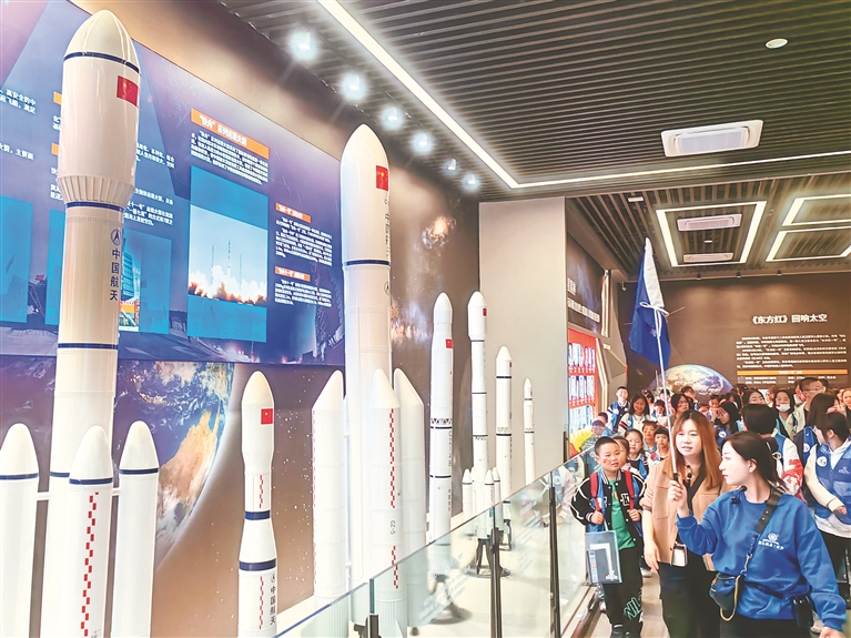 国庆假期,许多家长带着孩子来到哈尔滨工业大学航天馆参观学习。