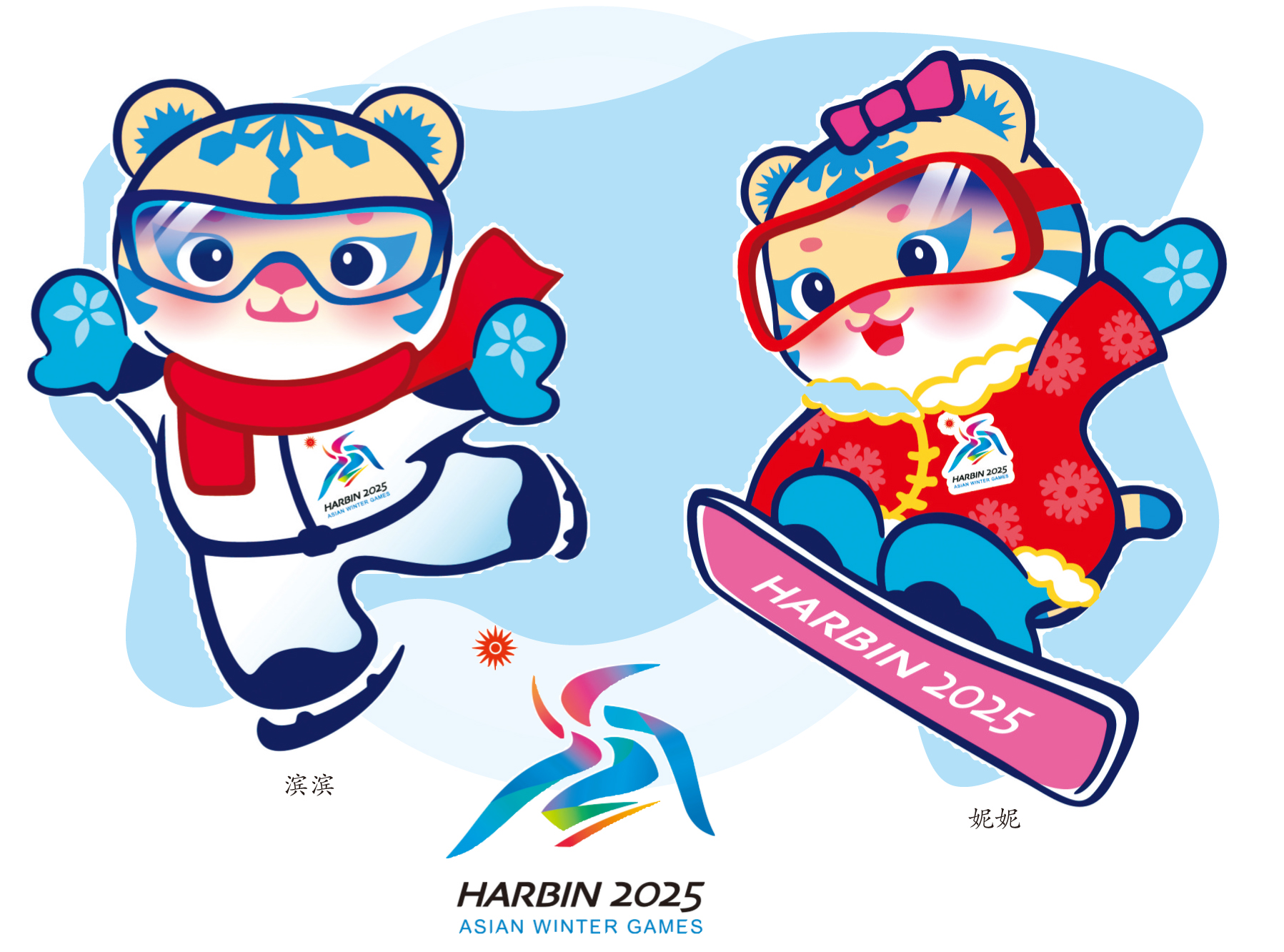吉祥物东北虎“滨滨”和“妮妮”同样由清华大学美术学院团队创作完成。“滨滨”和“妮妮”原型是2023年9月出生于黑龙江东北虎林园的两只可爱的小东北虎,寓意“哈尔滨欢迎您”,将东北地区独特的自然和文化遗产——东北虎拟人化,并与奥林匹克精神融合设计,彰显文化自信,激发文化活力,以优秀文化助力讲好中国故事、传播好中国声音。