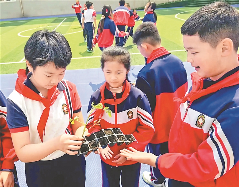 学生们每人认领一棵蔬菜苗,种在学校的小菜园或是家中的小花盆,学校教师利用劳动和科学课、生物课等指导学生们将实践操作和课程融合,农科院的专家们通过网络APP指导孩子们学习农业技术。这些承载着成长希望的菜苗,将成为学生观察植物生长周期的“活教材”。历经寒暑、春耕秋收,孩子们在劳动中潜移默化地了解农业知识与科学知识。