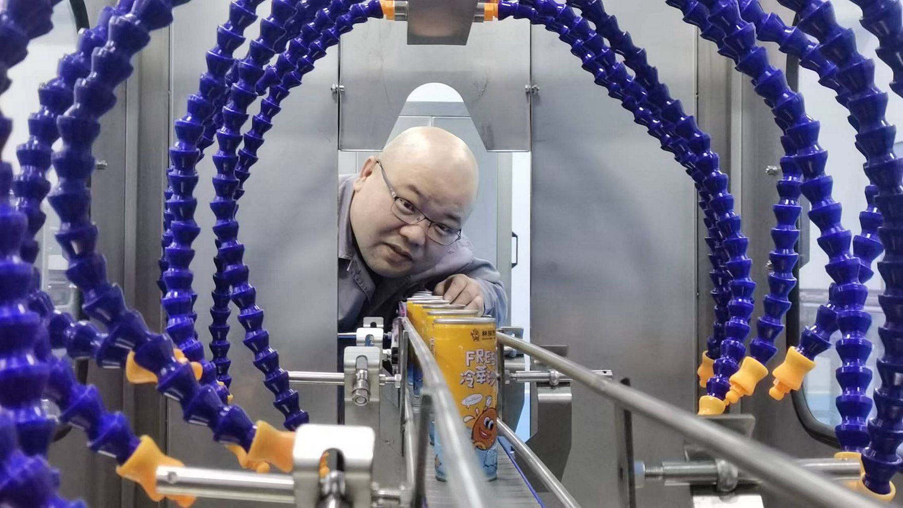 初夏,记者来到目前国内最大的沙棘加工企业——延寿县鼎鑫生物工程有限公司。在沙棘产业园区,技术人员正在安装调试数智化技术改造项目设备。其中,灌装生产车间内的灌装生产线已安装完毕,技工正在“试车”,一个个饮品罐在传送带上排着整齐的队伍通过加注廊道。