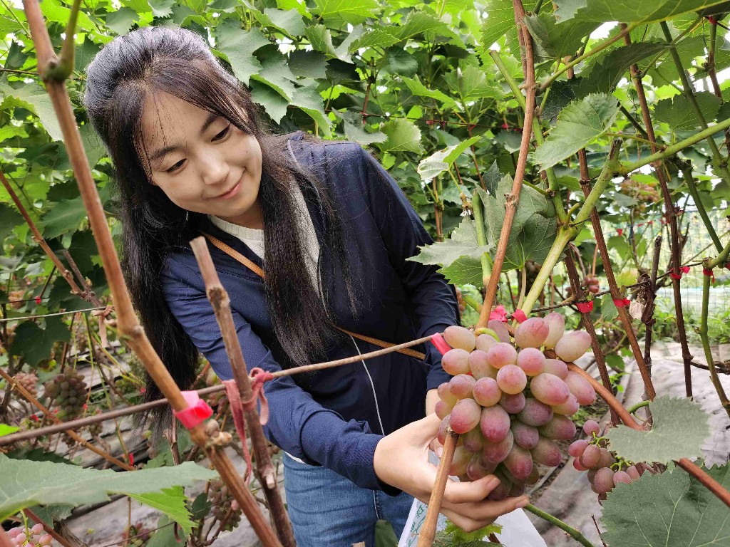 在巨玫瑰葡萄大棚里,市民拿着小剪子、塑料袋穿梭在一行行葡萄架中,寻找心仪的葡萄,“这么多葡萄,感觉哪一串都招人喜欢,我都有选择困难症啦!”从温春镇赶来采摘葡萄的宋女士有些拿不定主意。龙珠葡萄生态园的负责人耿聪赶紧过来帮市民挑选葡萄,并毫不吝啬地告诉市民如何挑选一串好葡萄的要领。