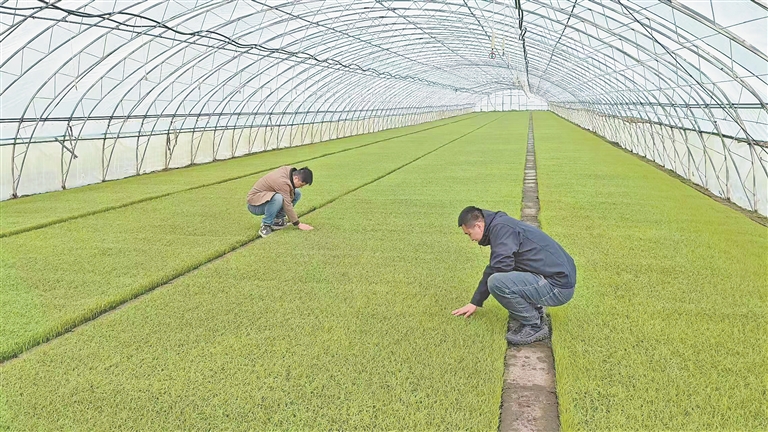 浓江农场是水稻种植专业场,农场60.9万亩耕地中99%是水田。眼下,农场9000余栋水稻育秧大棚内绿意盎然,整齐排列的秧盘里,嫩绿的水稻幼苗正在舒展新叶。