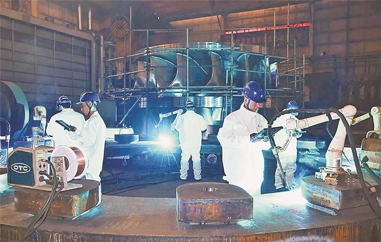 技术突破之路并非坦途。2024年项目启动初期,由党员骨干、技能专家与工艺技术人员组成的联合攻关团队,面临着焊接精度控制、复杂轨迹摆动等诸多挑战。他们从让机器人“复现”优秀焊工精湛技艺起步,与设备供应商紧密协作,对控制系统进行持续迭代优化。至今年3月,协作机器人已完全适应实际生产需求,验证了技术路线的可行性。为实现成果快速转化与推广,哈电电机成立自动化应用精益小组,并建立“种子人才”培养机制,通过专题培训、经验共享等形式,构建起高效的问题解决与人才孵化体系。同时,公司组织智能制造工艺部、产品设计部,系统梳理优化影响自动化焊接的前端工艺要素,为规模化应用扫清障碍。其间,团队累计攻克技术难题29项,并于2025年8月、9月先后突破工艺通用化、底环支墩焊接等关键工艺技术,逐渐使协作机器人真正具备了集群作战的能力。