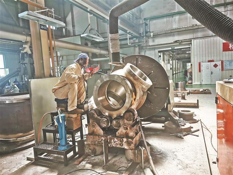 哈电阀门二车间焊接工人正在焊接机组配套旁路阀体。图片由受访单位提供