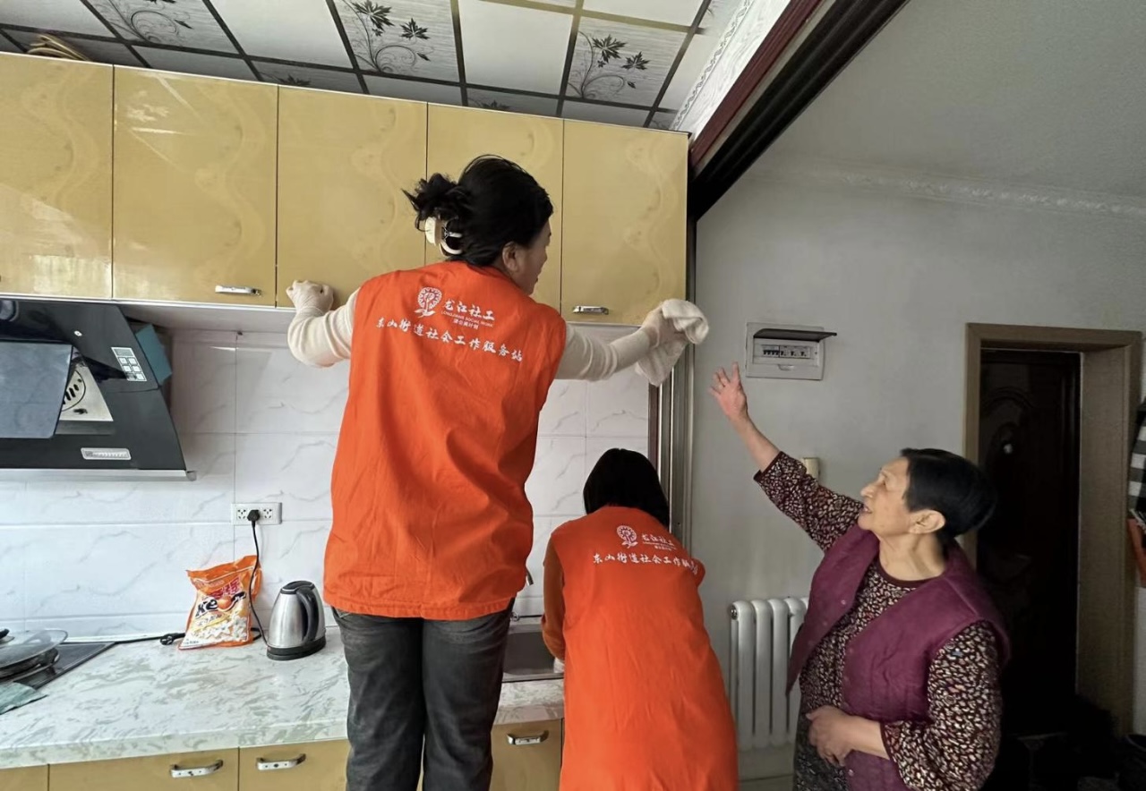 在大兴安岭地区加格达奇区东山镇美林嘉苑小区84岁的孙阿姨,是一位高龄独居且残疾的低保老人,也是一位军人遗属。孙阿姨常常怀念过去老伴在世的时光,内心渴望被关注和关怀。针对孙阿姨的情感需求,社工站通过节日走访慰问,在春节前为老人送去粮油和对联等年货。在“五一”国际劳动节为老人送去清洁用品,在端午节为老人送鸡蛋、包粽子。并且在节日前,社工和志愿者还上门为老人擦玻璃和清理厨房卫生,专门安排一名志愿者陪老人聊天。社工贴心的服务,让老人很安心。