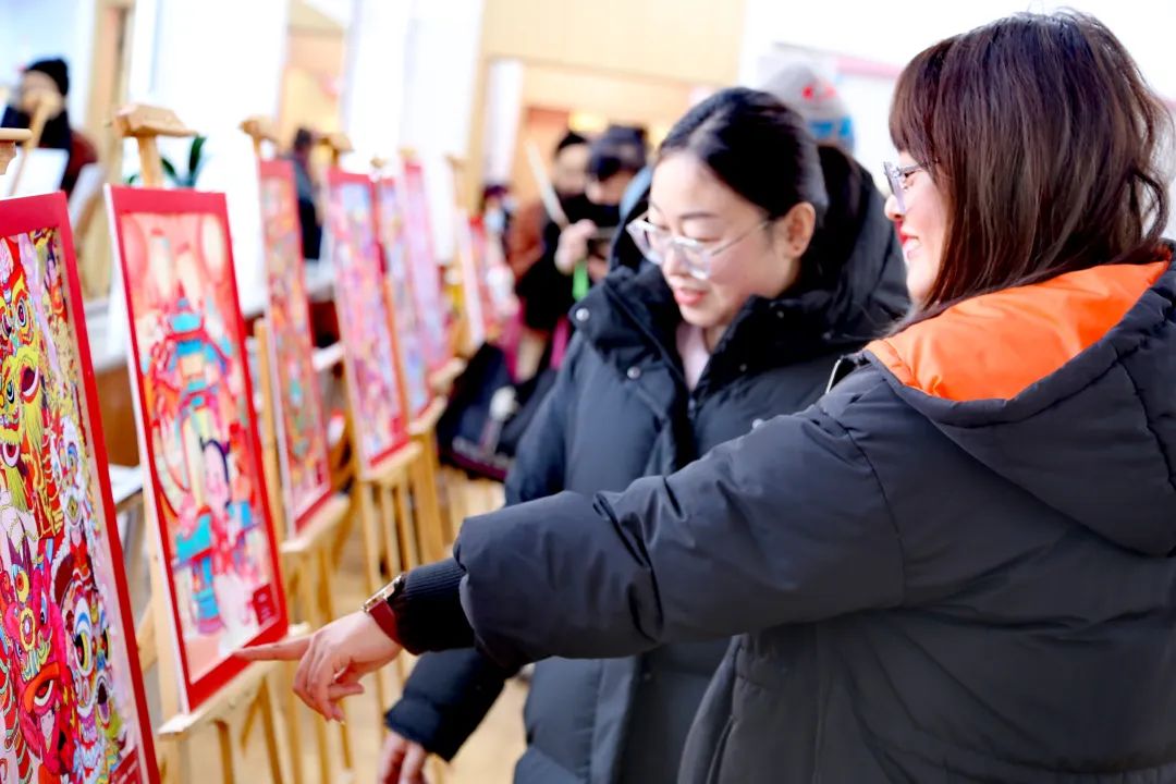 在活动展区,开展了“赏年画 品非遗”活动。丰富的非遗体验项目让大家体验了传统文化的魅力。一幅幅精美的年画整齐陈列,营造出浓郁的节日氛围,年画色彩绚丽夺目,题材丰富多样。灵蛇盘旋于繁花之间,构成一幅寓意吉祥如意的花鸟蛇图,引得居民们纷纷驻足欣赏,现场欢声笑语不断。