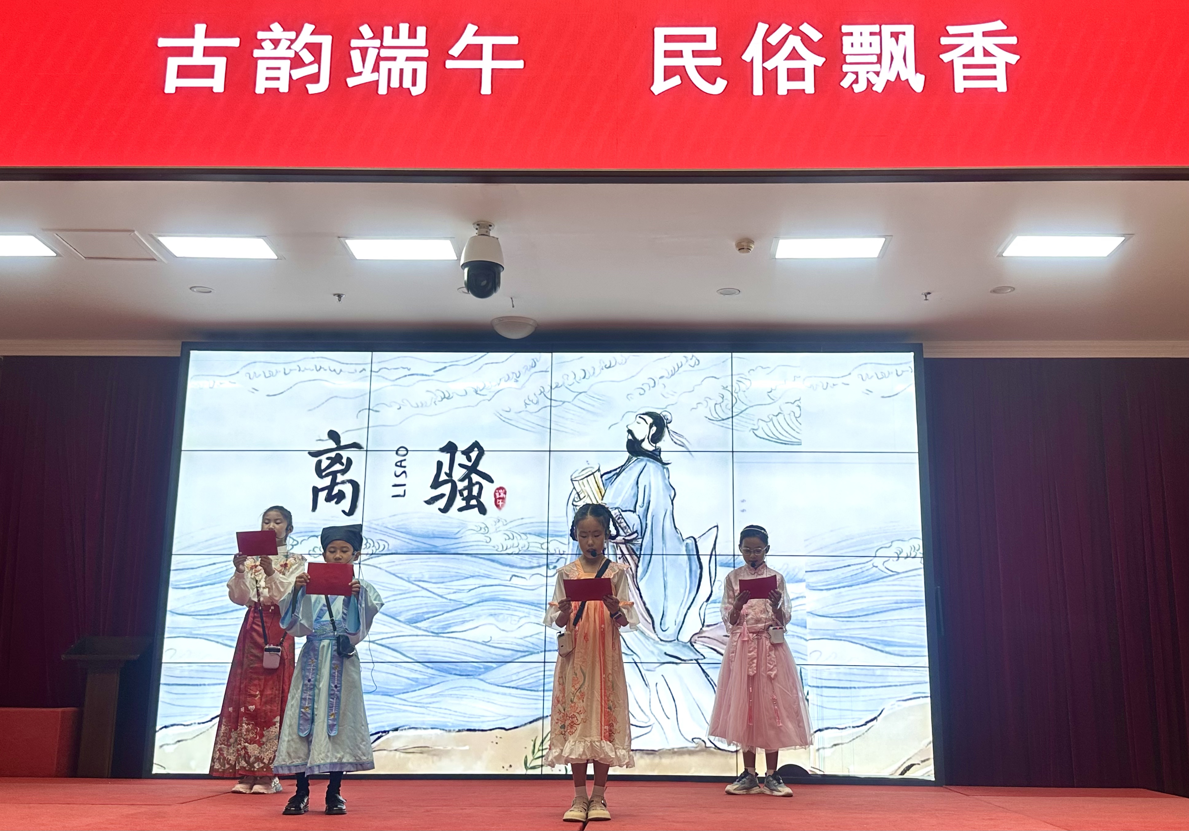 紧接着的文化展演更是异彩纷呈:古风舞者衣袂飘飘,以曼妙舞姿演绎着古老的节韵;“省博小小讲解员”化身诗词精灵,字正腔圆、情感充沛的朗诵,让千年前的楚辞《离骚》在今日的厅堂里焕发生机。