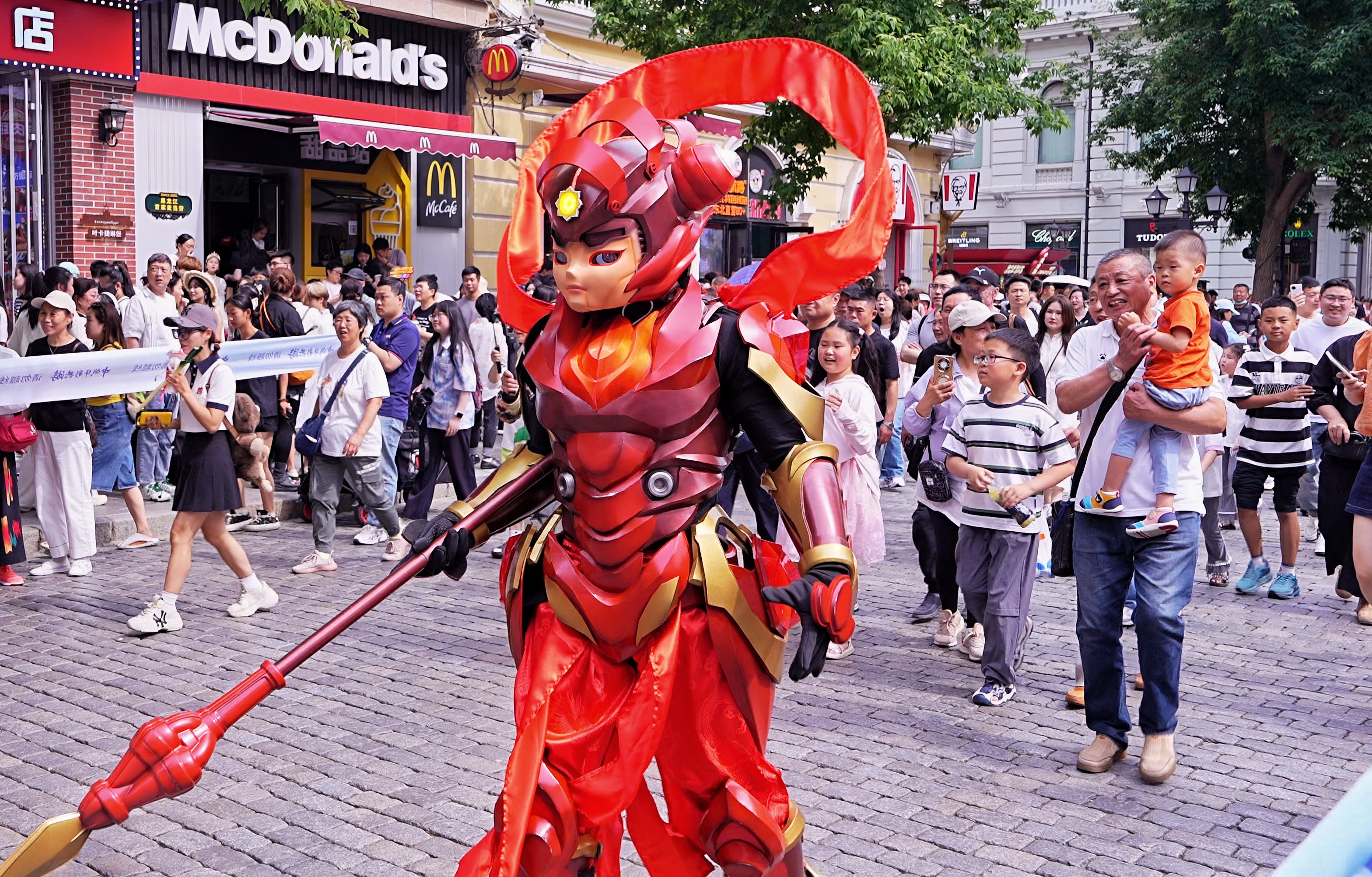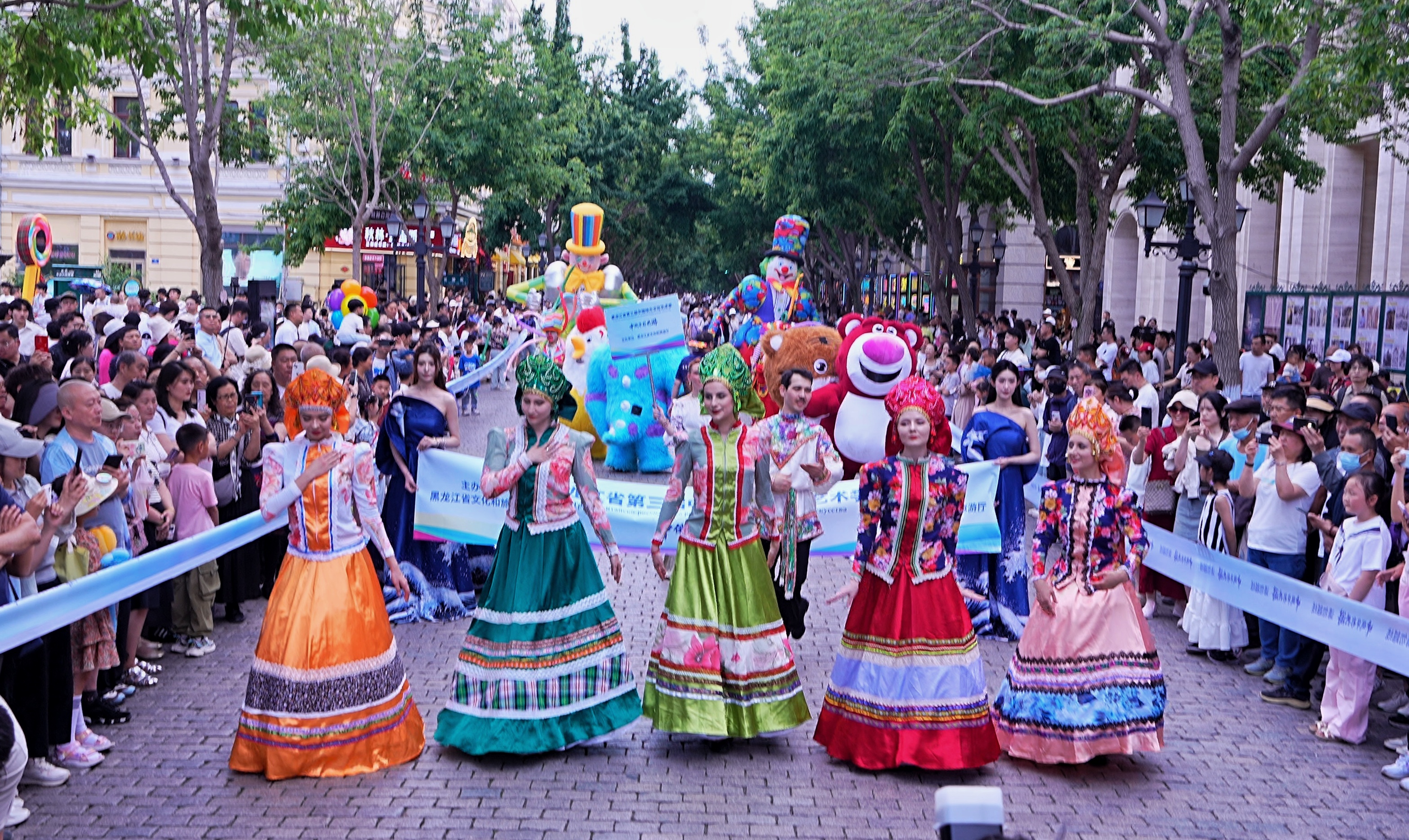 6月15日,“中俄华彩共游”主题巡游活动在哈尔滨中央大街启幕。