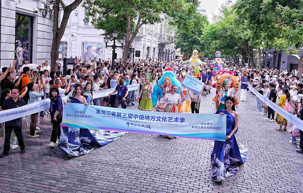 省文化和旅游厅主办的黑龙江省第三届中俄地方文化艺术季之“中俄华彩共游”主题巡游活动,以多元艺术形式展现中俄文化魅力,吸引了众多市民与游客参与。