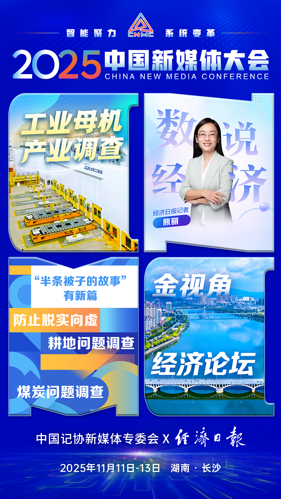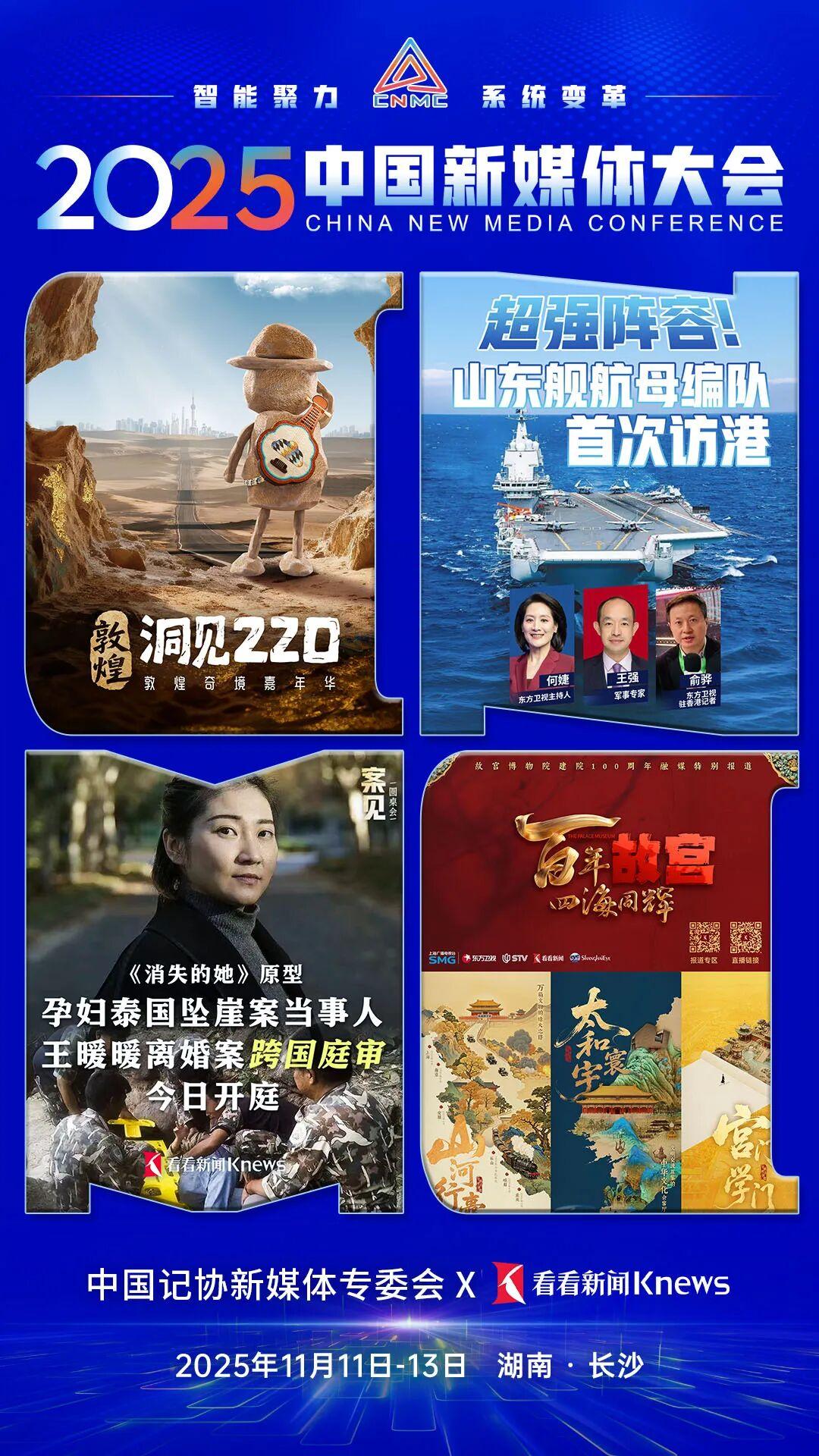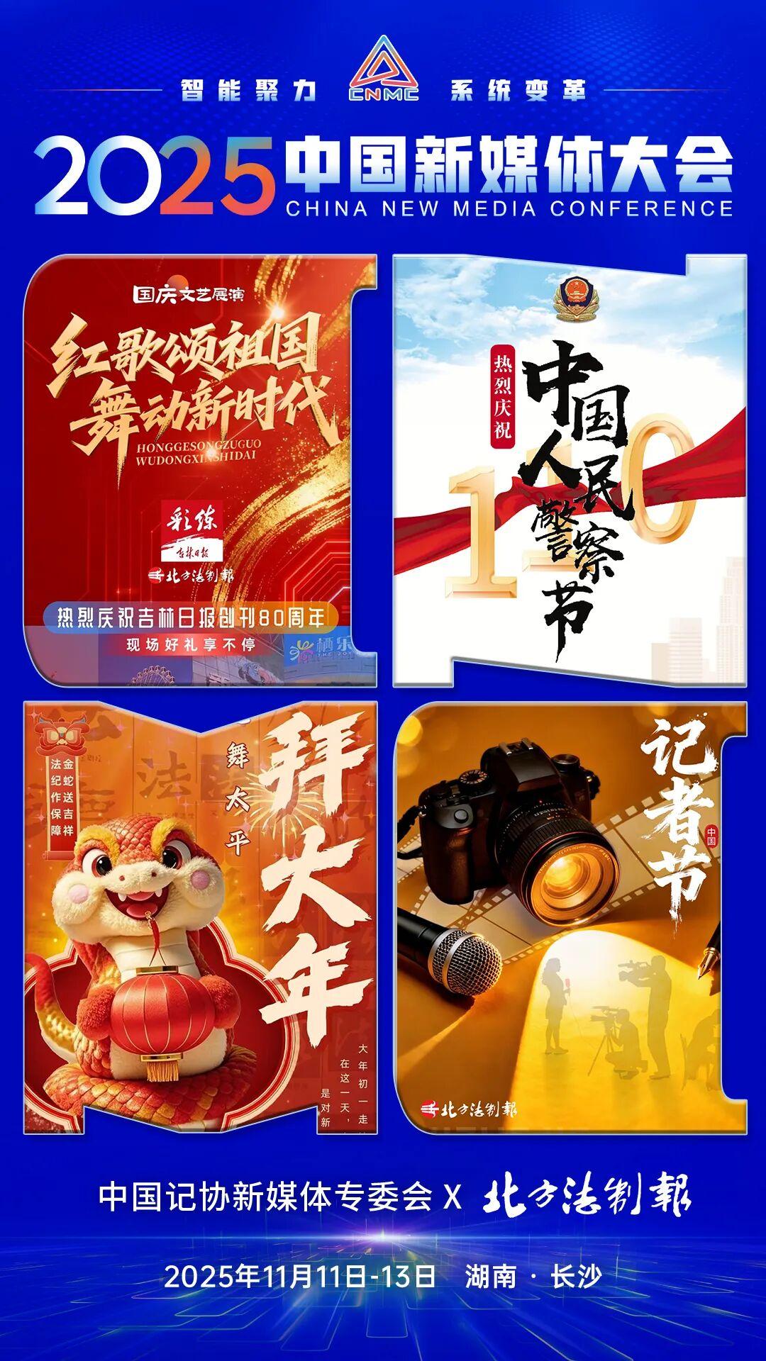 2025中国新媒体大会将于11月11日至13日在湖南长沙召开,中国记协新媒体专业委员会各成员单位纷纷推出“联名海报”为大会预热。