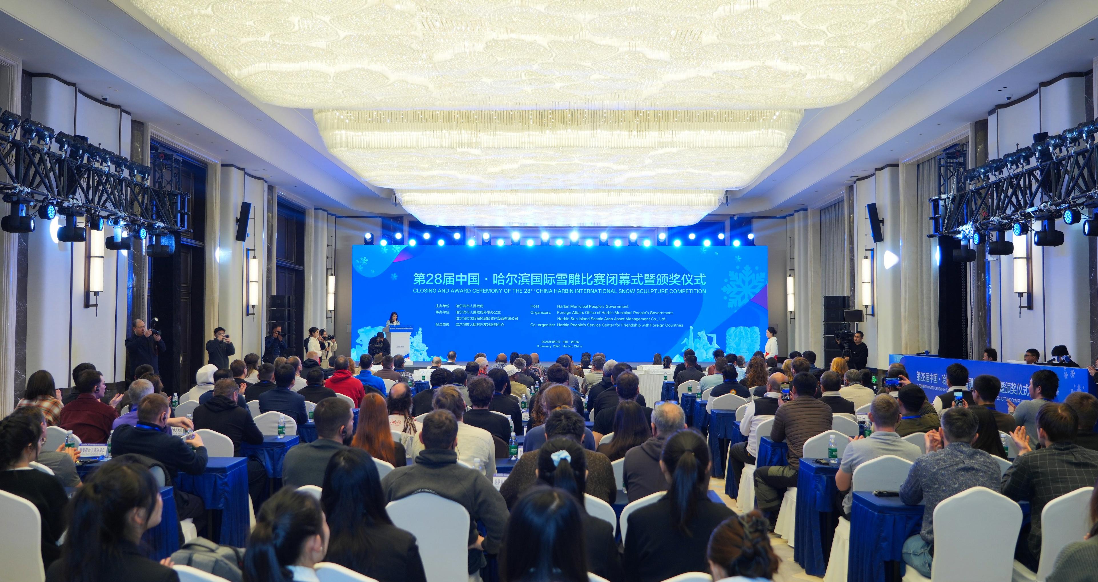 1月9日,第28届中国·哈尔滨国际雪雕比赛闭幕式暨颁奖仪式在哈尔滨隆重举行。来自13个国家的25支代表队、百余位冰雪艺术家齐聚一堂,共同见证这场冰雪艺术盛会的荣耀时刻。