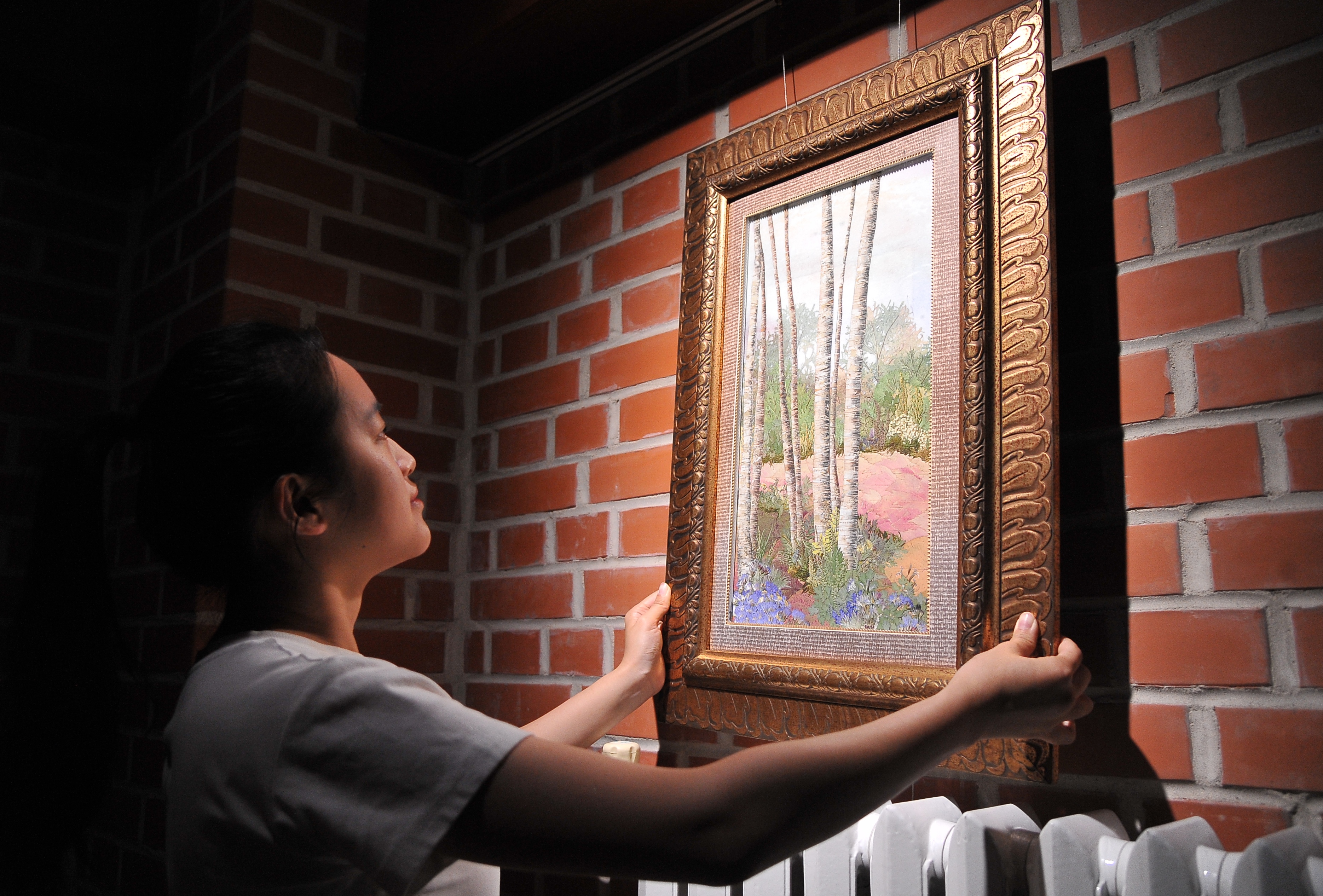 19日,抚远市东极艺术馆内,布展工作已近尾声,不时有南方游客走进馆内先睹为快。
