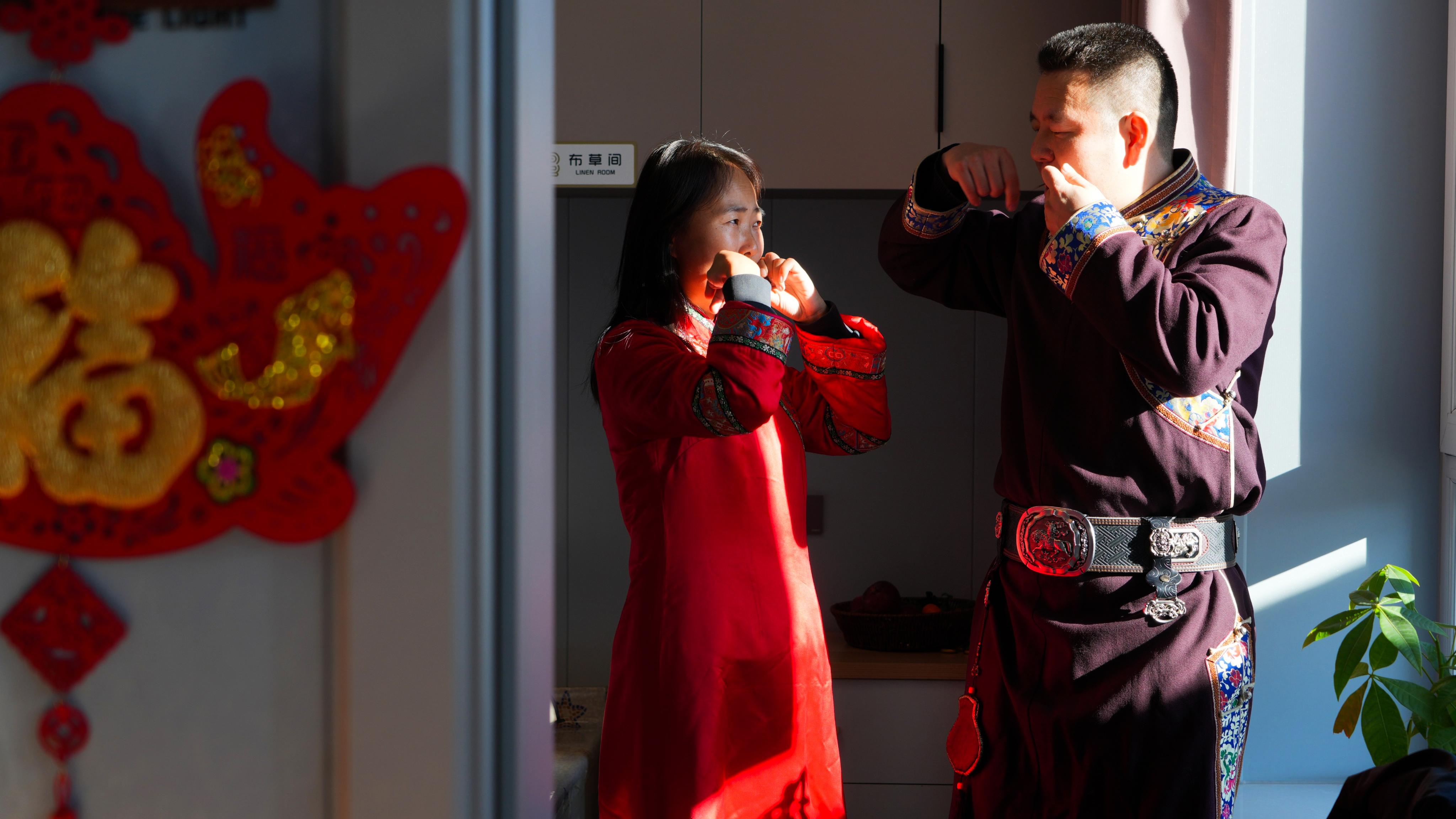 “达斡尔族小年的规矩是得贴福字、包饺子,这样福气才能留得住!”郭勇一边招呼邻居帮忙布置房间,一边笑着说,“今年我爱人在外地,小年回不来,多亏了这些好邻居,虽然人不齐,但‘年味’一点不能少。”