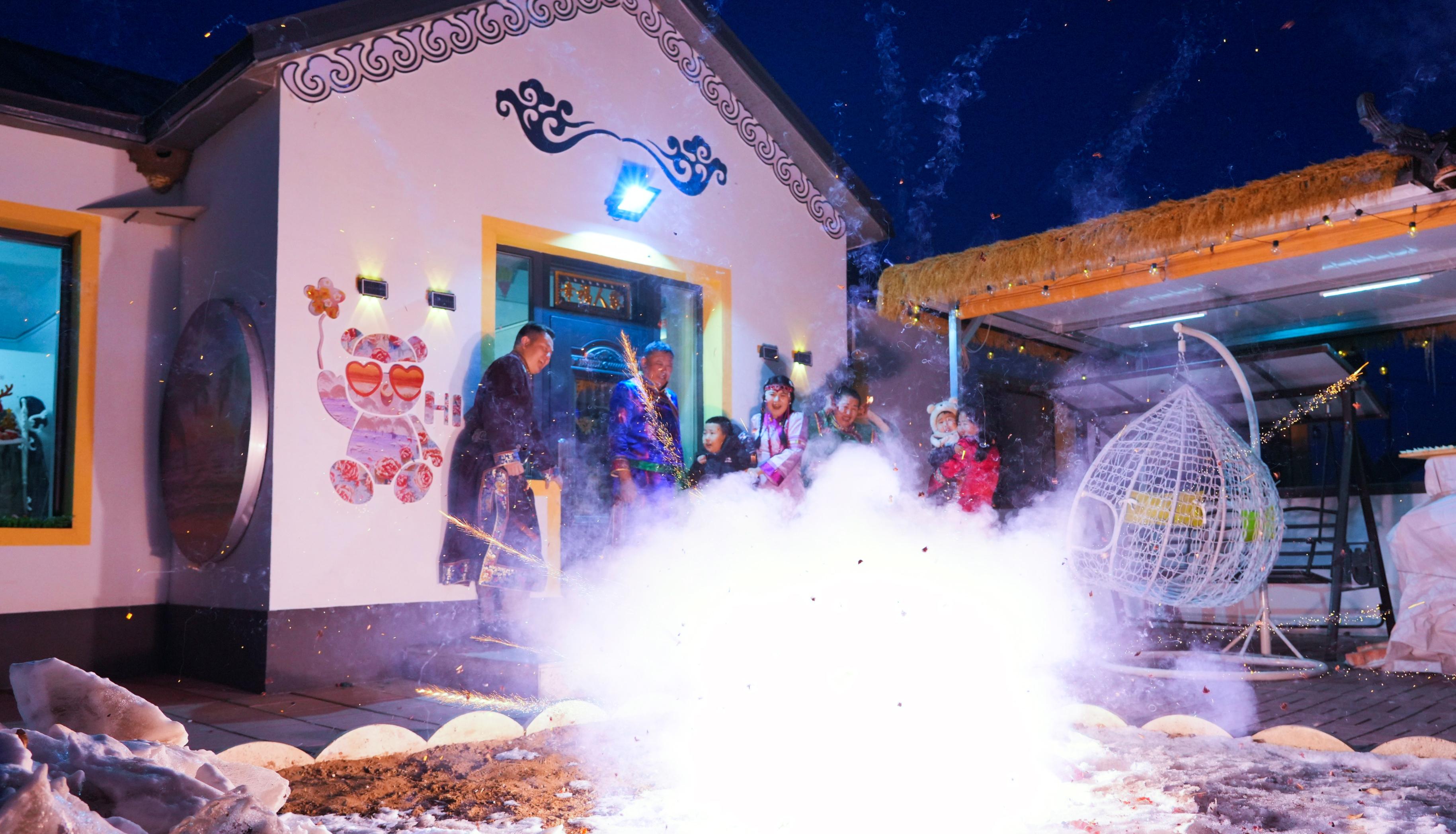 嫩江江畔的气温降至零下15摄氏度,冰道凝霜,寒风凛冽。在郭勇开设的“拾光庭院”民宿内,却是另一番火热景象。红灯高悬,福字报喜、暖意融融,空气中处处弥漫着“年”的气息。
