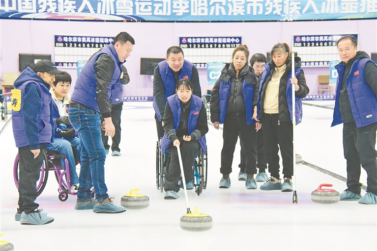 本报讯(记者刘瑞)为鼓励更多残疾人参与到冰雪运动中,3月24日,以“绽放冰雪梦想,乐享康复健身体育”为主题的第九届中国残疾人冰雪运动季哈尔滨市首届残疾人冰壶推广赛在哈尔滨奥禹冰壶运动中心举行。