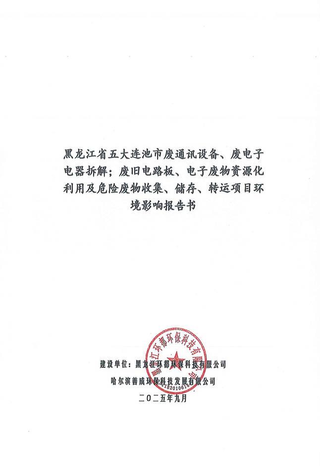 黑龙江省五大连池市废通讯设备、废电子电器拆解;废旧电路板、电子废物资源化利用及危险废物收集、储存、转运项目环境影响报告书及公众参与说明