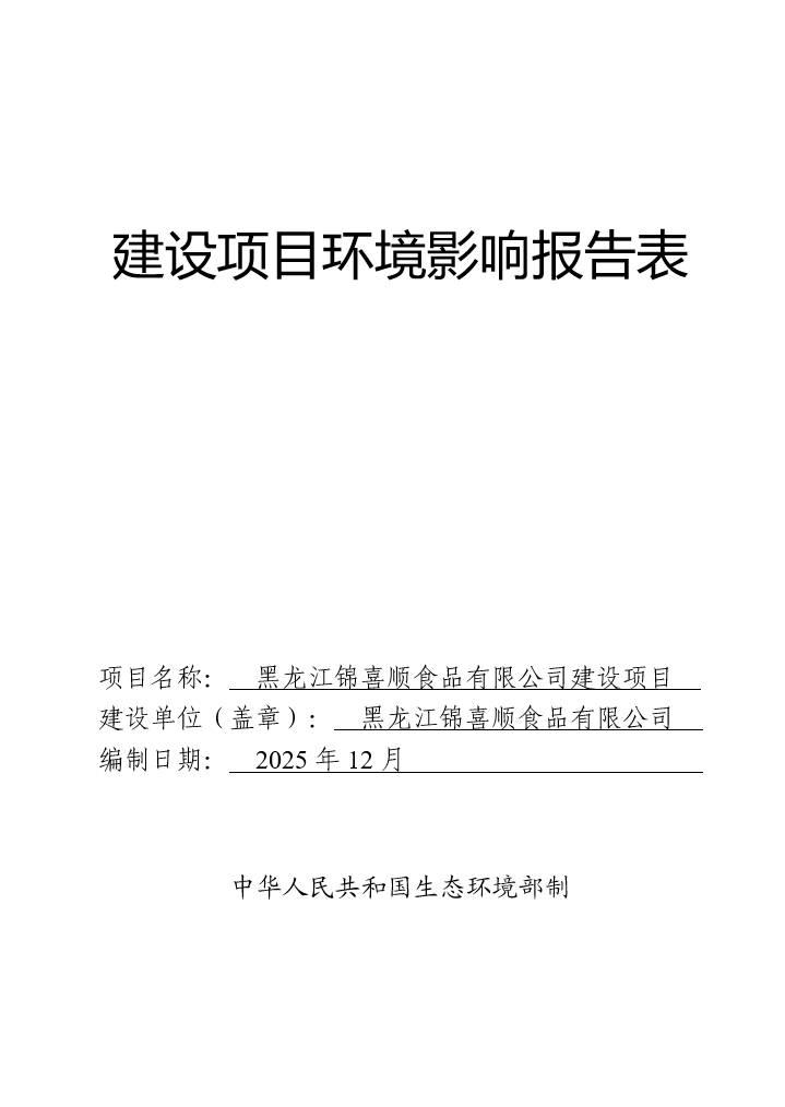 黑龙江锦喜顺食品有限公司建设项目环境影响报告表