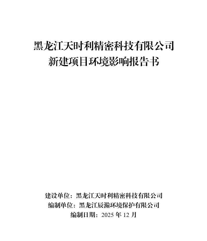 黑龙江天时利精密科技有限公司新建项目环境影响报告书及公众参与说明