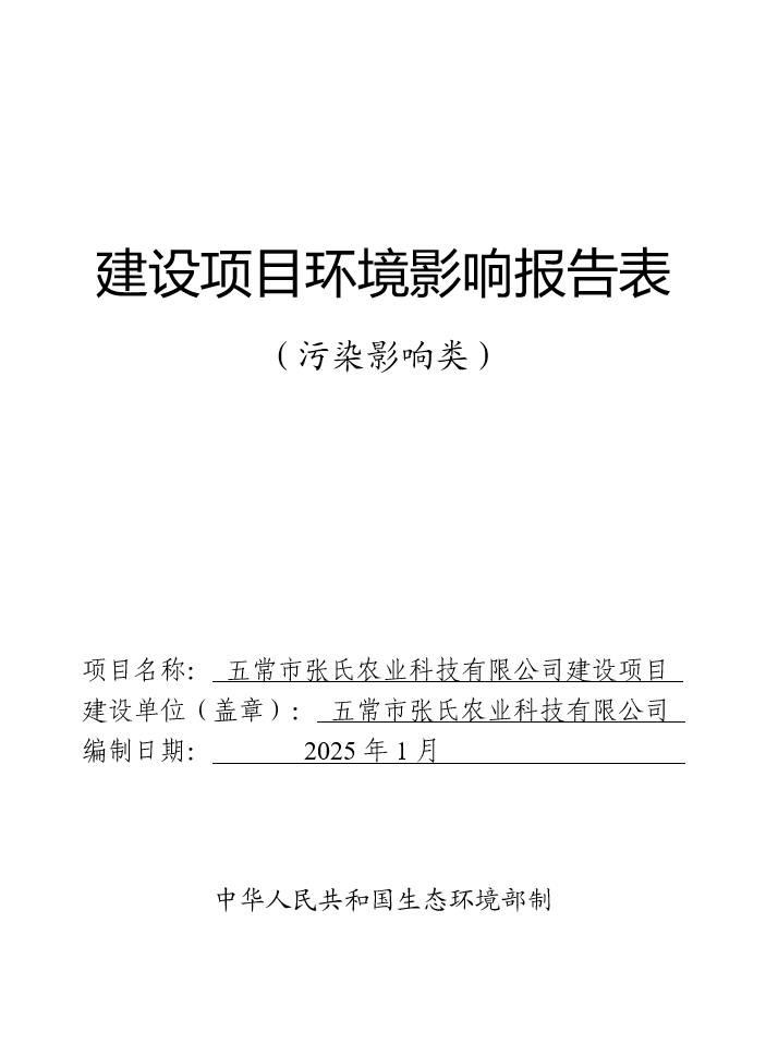 五常市张氏农业科技有限公司建设项目环境影响报告表